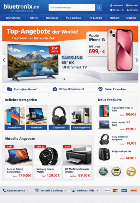To znamená, že môžeš v bluetronix Tvorcovi webových stránok jednoducho vkladať predpripravené sekcie stránok. K dispozícii máš na výber veľmi veľa. Potom môžeš veľmi jednoducho nahradiť texty a obrázky v týchto sekciách. Nakoniec bude všetko vizuálne zlúčené a tvoja webová stránka bude vyzerať kvalitne a súdržne.